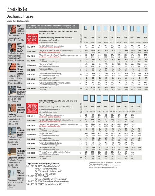Preisliste Velux Einzel Eindeckrahmen Zwillings Eindeckrahmen
